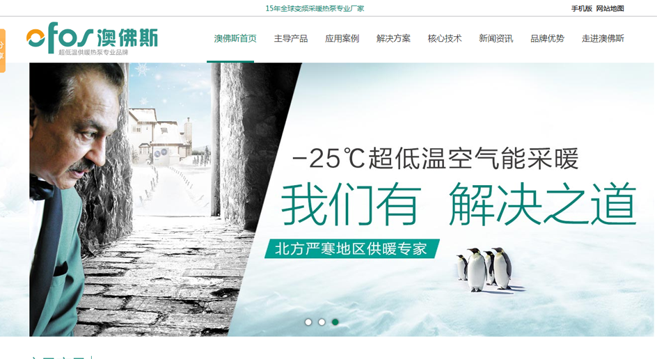 2014年6月,澳佛斯進駐中國佛山,建立了佛山澳佛斯新能源科技有限公司,是一家*研發(fā)制造“超低溫空氣源供暖專用熱泵”的高新技術企業(yè),同時擁有兩個生產(chǎn)基地,實現(xiàn)年產(chǎn)30萬臺低溫供暖專用的熱泵,專為中國北方嚴寒地區(qū)提供采暖及制冷解決方案;