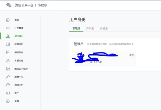 3、找到小程序的“管理員”或者“開發(fā)者”(可以綁定“開發(fā)者”),兩者選擇其一即可